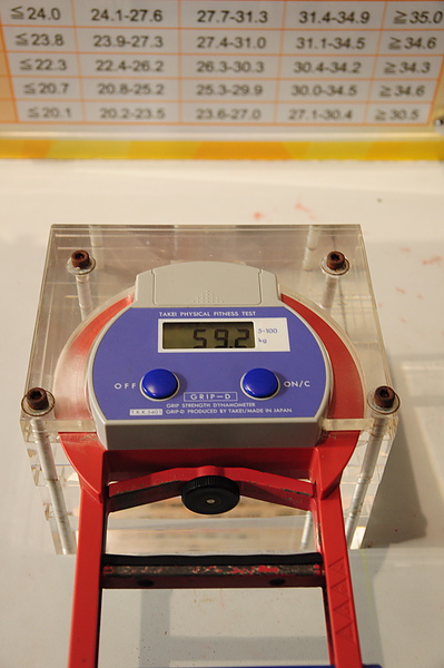 這是測量握力的器材,59.2 我只出兩成力,結果呢?
