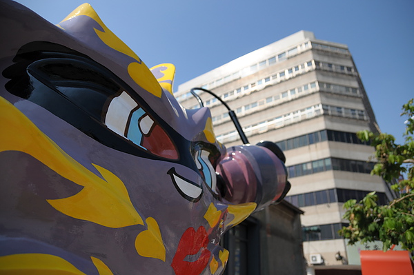 看完了館內走出來,這是2010年高雄電影節火球人的造型,有別於2009年多了鞭子跟翅膀,為SM風格